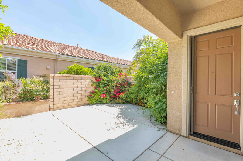 Welcome home to the 55+ Solera Diamond Valley Community by Del Webb. This is a Turnkey 1,240 Sqft. 2 bedroom 2 bath rare” Capistrano” model home. The curb appeal features mature, well maintained drought tolerant landscape, groundscape is rock accented and includes blooming shrubs, rose bushes and shade trees and additional greenery. Home has stone enhanced pillars for visual interest and upgrade, rain gutters, and a large, secluded front courtyard provides for outdoor enjoyment to watch the world go by. This home has a clean, neutral palate throughout, tile and carpet options for flooring, 10-foot ceilings and ceiling fans in all living spaces. The kitchen boasts an abundance of granite countertop space and cabinet storage, clean white appliances, large pantry, breakfast nook and pass through window to the living room. Large primary bedroom with ensuite featuring dual sinks, walk-ln shower, large closet with multi-layer shelfing and hanging racks to maximize closet space. The secondary bathroom is a combo tub shower option. Separate laundry room with overhead cabinets for extra storage and convenience. The backyard with California patio, hardscape, ceiling fan, well established drought tolerant landscape, and a lemon and orange tree, for sweet homemade lemonade in the summer and fresh squeezed orange juice in the mornings. The amazing community center has: a workout center with walking track, a library, billiard tables, conference rooms, theater, indoor pool, two outdoor pools, Bocce ball courts, tennis courts and pickle ball courts. The community has daily, monthly, and annual events that bring the community together.