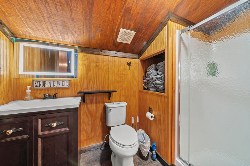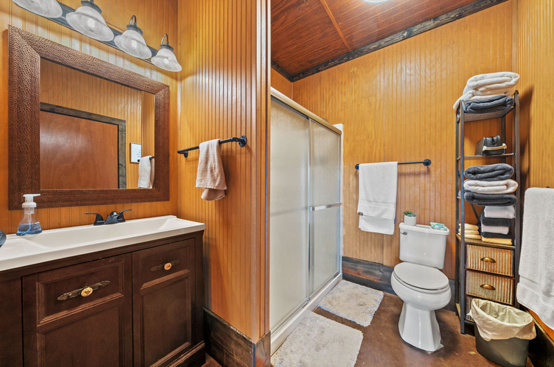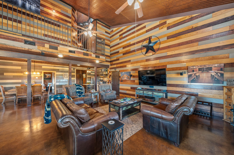 Upstairs, the loft includes 3 bedrooms, a full bath, great closets, and tons of storage while sleeping many family and guests—overlooking the great room while keeping guests private. Custom stair/railing adds safety.