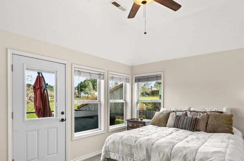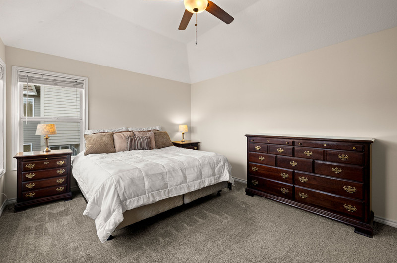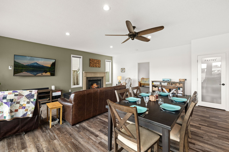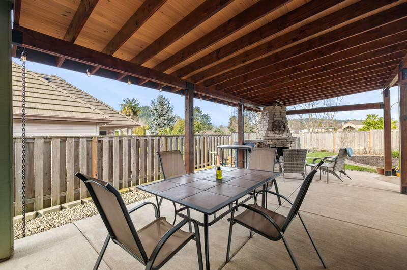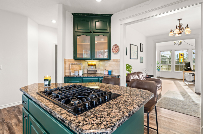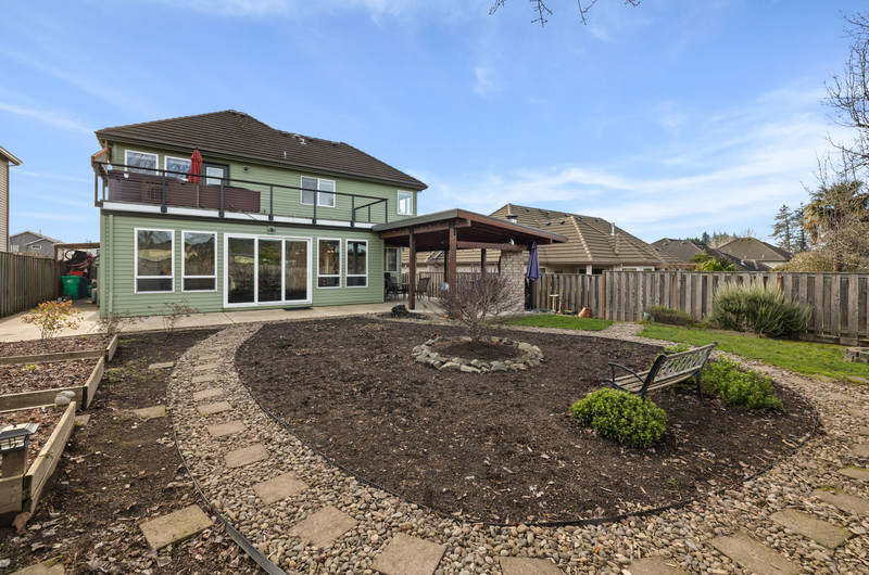 Captivating traditional style home offering five bedrooms, three bathrooms, and a two-car garage. Beautiful peaceful views from front and back of home of community greenspaces. A welcoming entry opens to a spacious living room or front office, seamlessly connecting to the formal dining room. The generous kitchen features stainless steel gas appliances, double ovens, granite countertops, and a center island with cooktop, opening to the family room with an additional dining area and a cozy gas fireplace. A secondary primary suite on the main level provides an ideal space for guests, multigenerational living, or a potential fifth bedroom. Upstairs, you’ll find three bedrooms plus the primary suite with a private deck, walk-in closet, and luxurious en-suite bath featuring a custom tile shower, soaking tub, and separate water closet. The main level family room boasts tri-fold glass doors that open to a spacious covered patio perfect for entertaining. The fully fenced backyard includes raised garden beds, charming pathways, an outdoor fireplace, and a patio plumbed for a gas BBQ and sink.