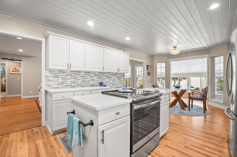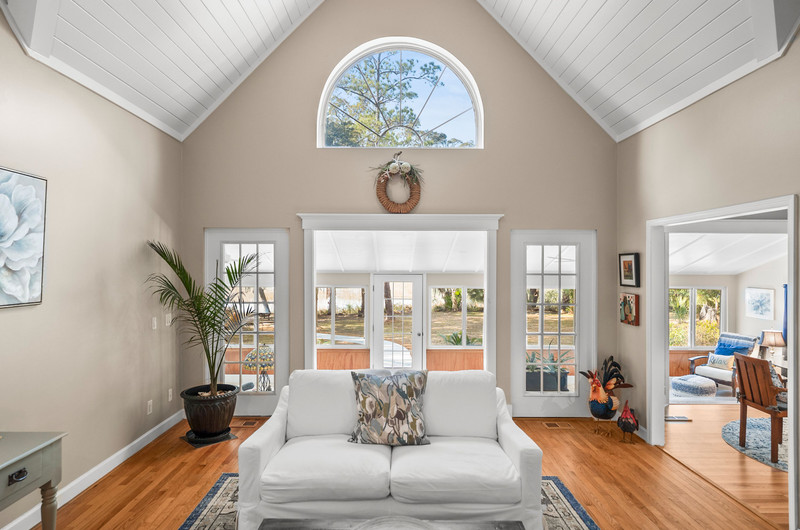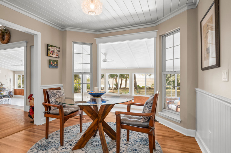 “Peace Point” sits on just over an acre with a marshfront view of the Broad River. This Lowcountry‑style home offers privacy, breathing room, and a layout that pulls the outdoors into the daily rhythm of the house. A wraparound front porch opens to a freshly updated interior with no carpet, white shiplap ceilings that brighten the space, and a balanced mix of open areas and defined rooms.