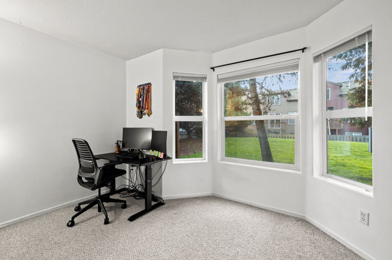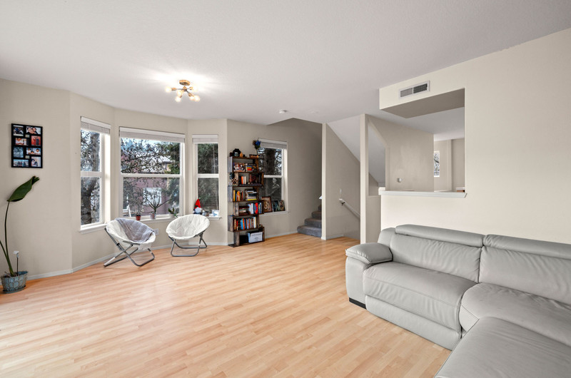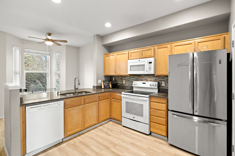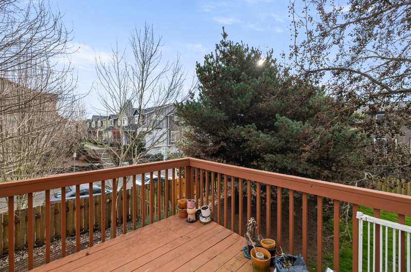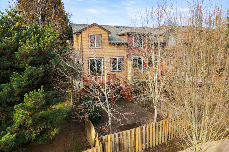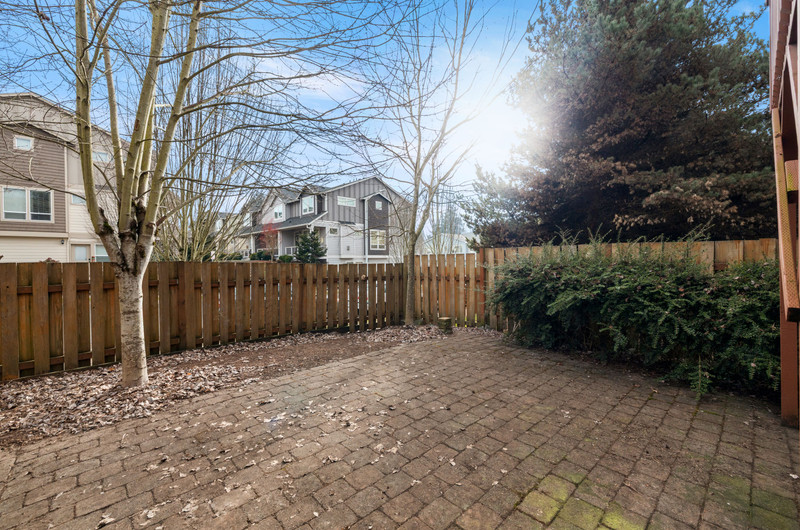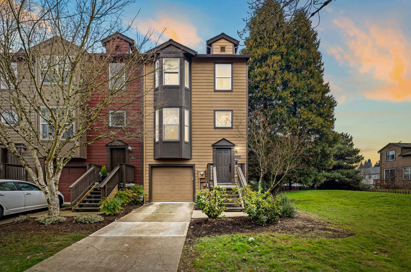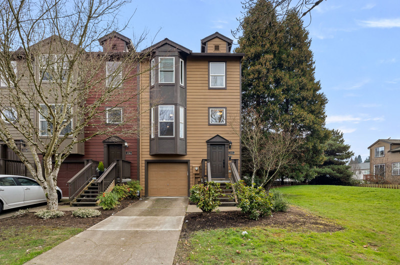 This townhome is the premier spot in the community - a beautiful end-unit in Orenco Place, ideally situated next to a large green space and filled with natural light. With abundant windows and a sunny southern exposure, this home feels light, warm, and welcoming all day long. Bay windows in the kitchen, living room, office, and primary bedroom add charm and character to the move-in-ready interior. Step outside onto a peaceful deck and fully fenced yard/patio — perfect for relaxing, entertaining, or enjoying time with your furry friends. The home also features a spacious two-car tandem garage, offering room for two vehicles, ample extra storage or a home gym. Conveniently located just minutes from Intel, Nike, Orenco Station, MAX, parks, shopping, and restaurants.