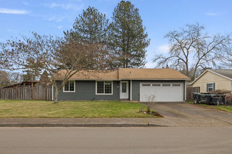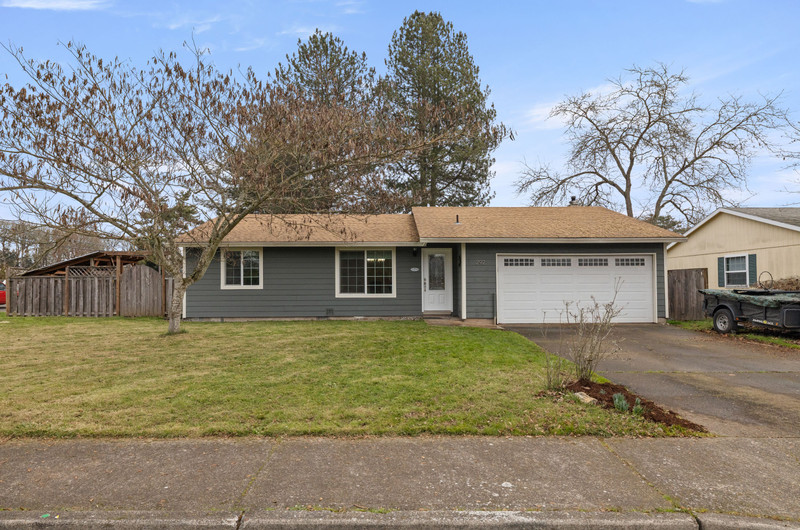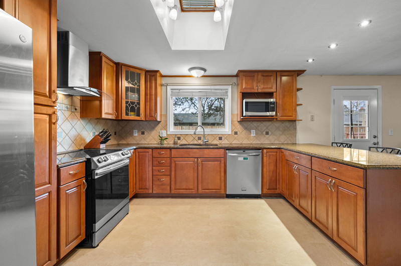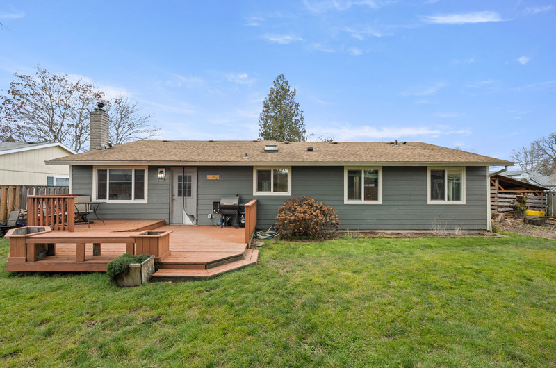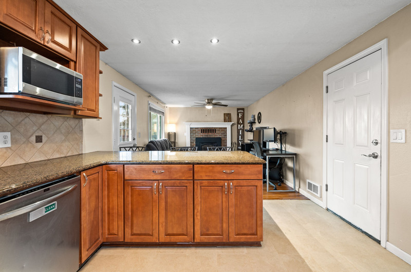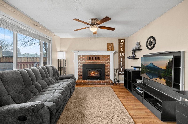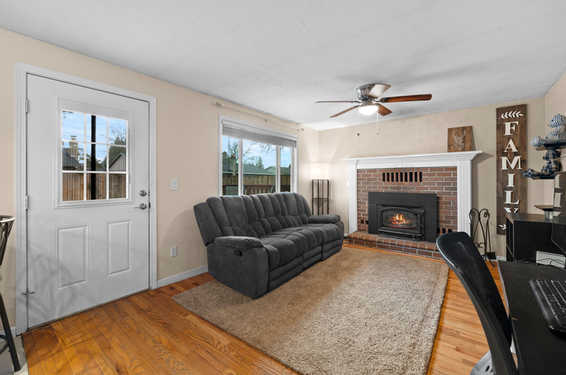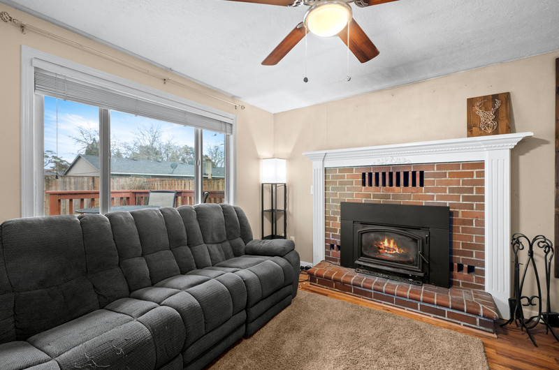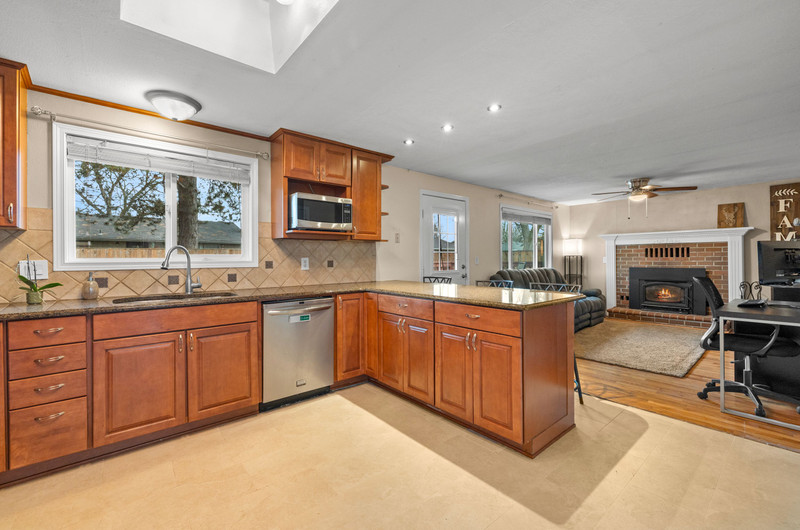 Charming single level home with three bedrooms and one bathroom, located on a generous 0.16-acre corner lot tucked away on a quiet cul-de-sac street. Hardwood floors welcome you into a formal dining area or flexible living space. The open kitchen showcases wood cabinets, granite countertops, stainless steel appliances, breakfast bar for three and newly installed tile flooring. The family room is warmed by a wood-burning fireplace insert. Enjoy outdoor living in the fenced backyard with a spacious deck, garden shed, and covered wood storage.