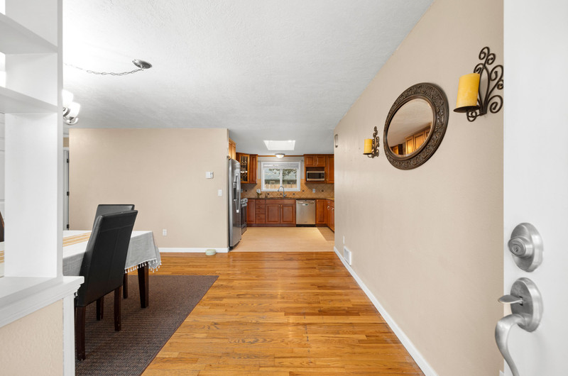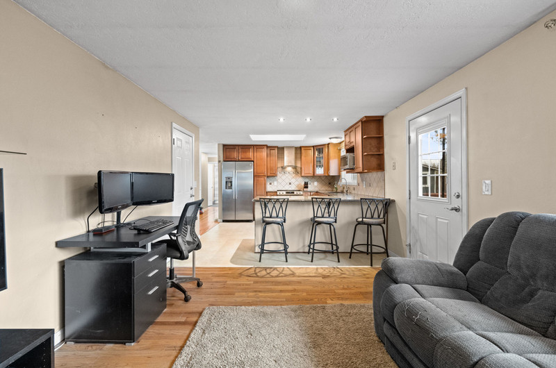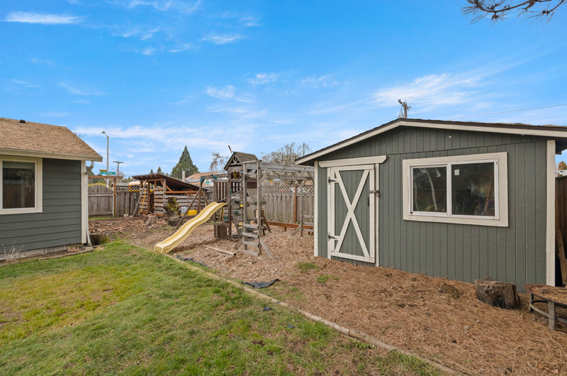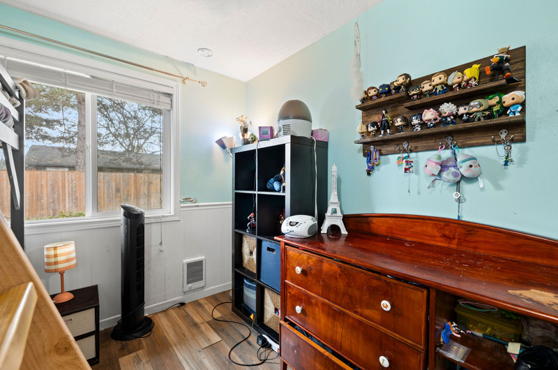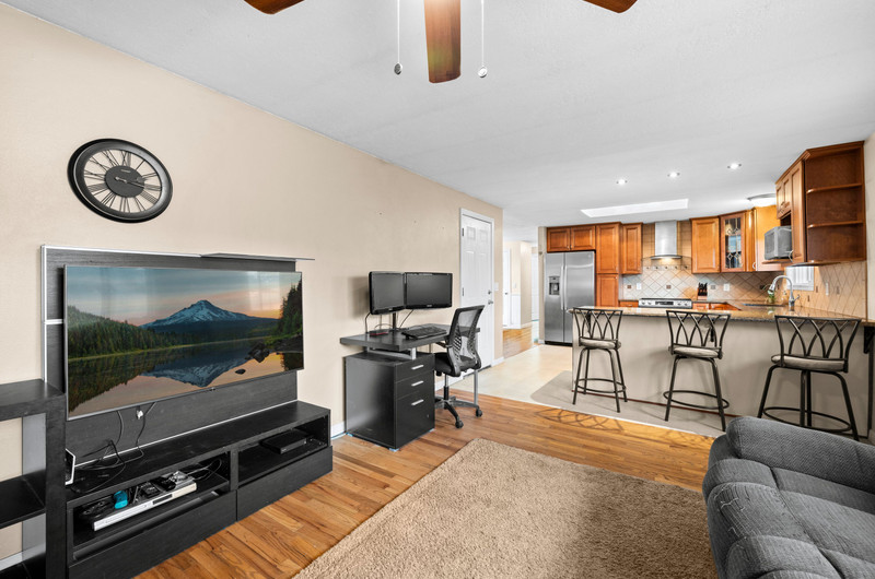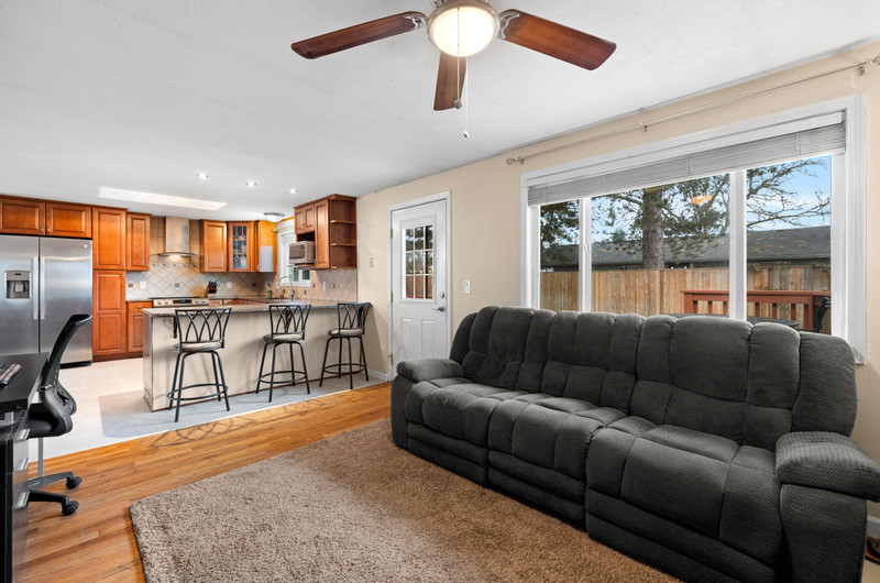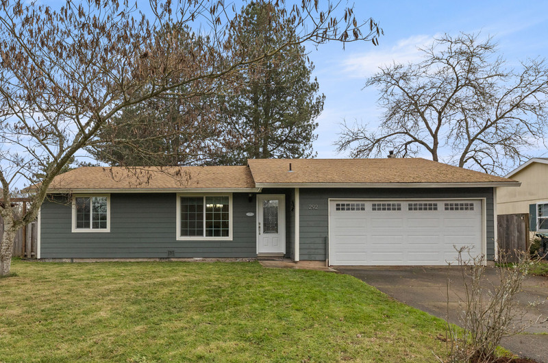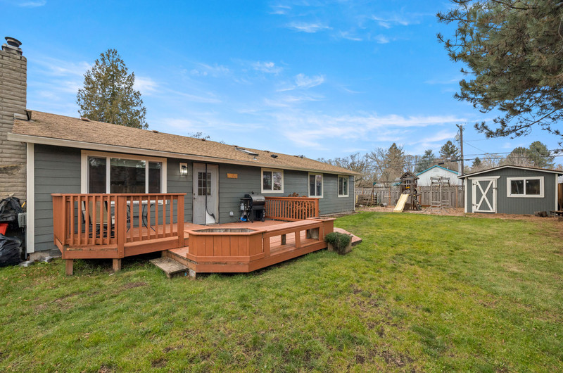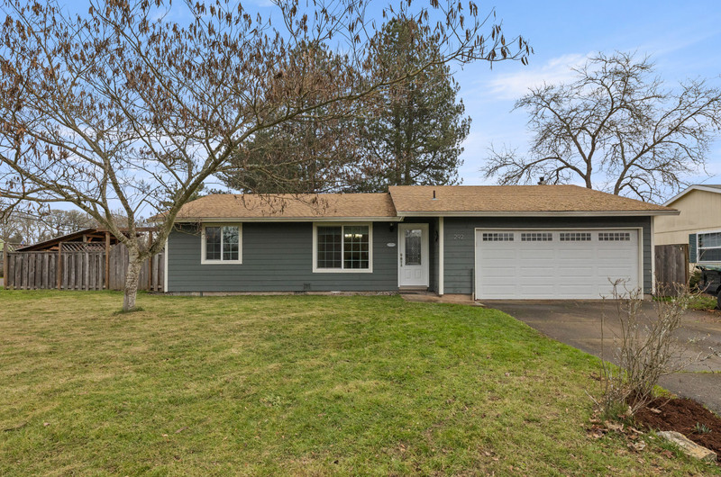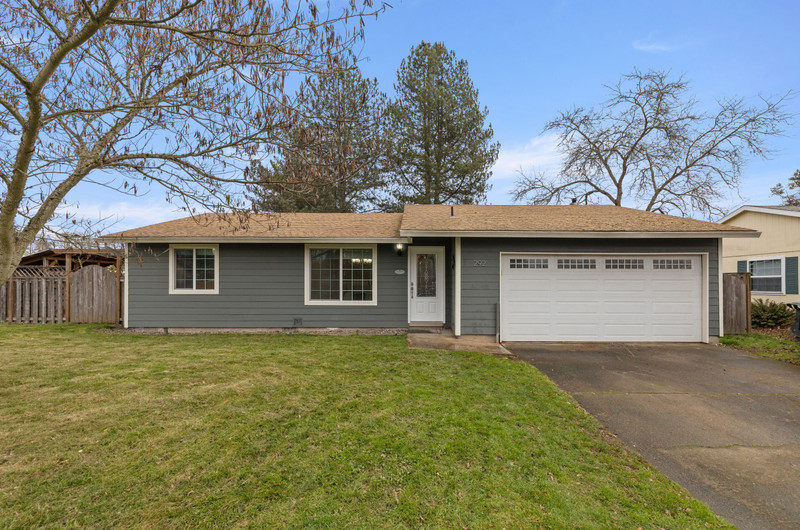 Charming single level home with three bedrooms and one bathroom, located on a generous 0.16-acre corner lot tucked away on a quiet cul-de-sac street. Hardwood floors welcome you into a formal dining area or flexible living space. The open kitchen showcases wood cabinets, granite countertops, stainless steel appliances, breakfast bar for three and newly installed tile flooring. The family room is warmed by a wood-burning fireplace insert. Enjoy outdoor living in the fenced backyard with a spacious deck, garden shed, and covered wood storage.