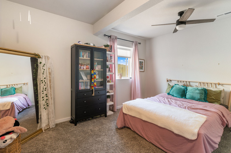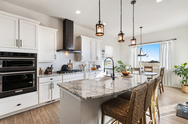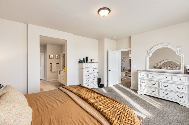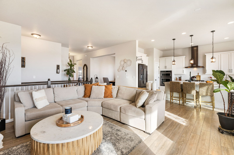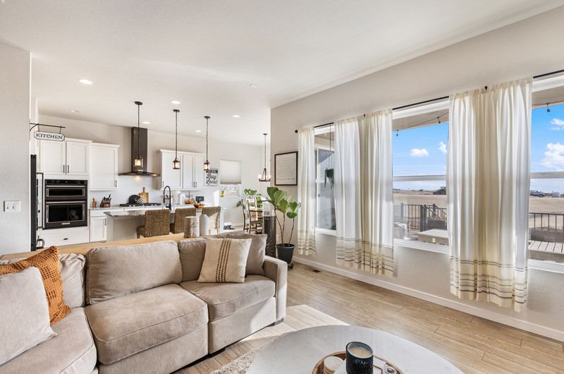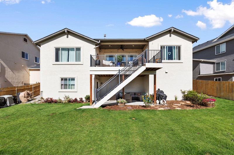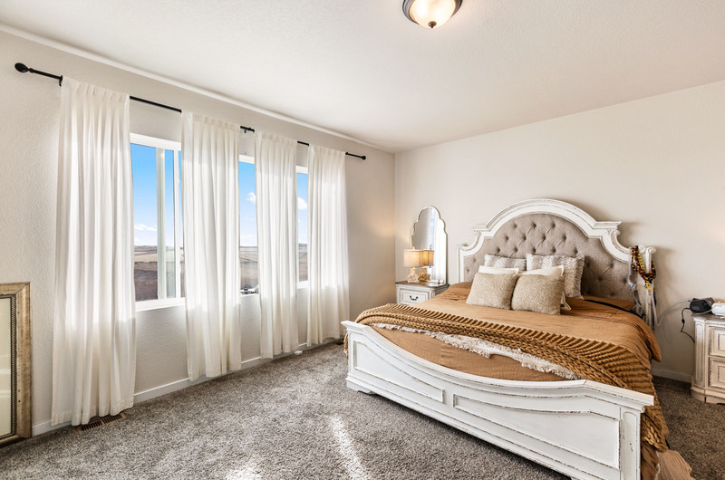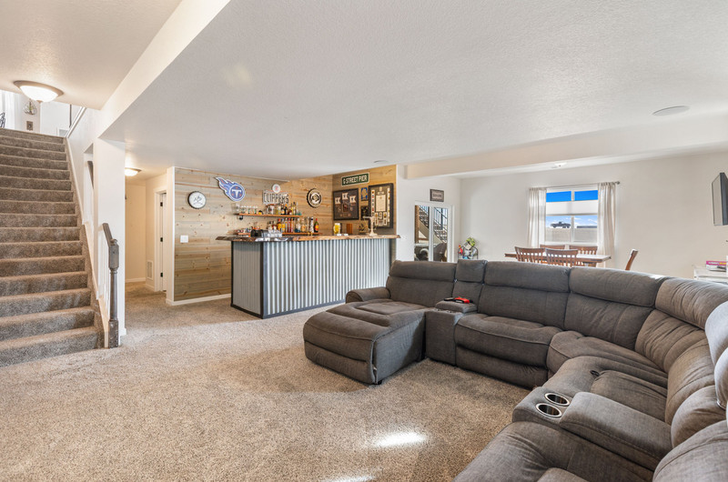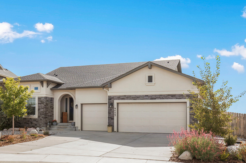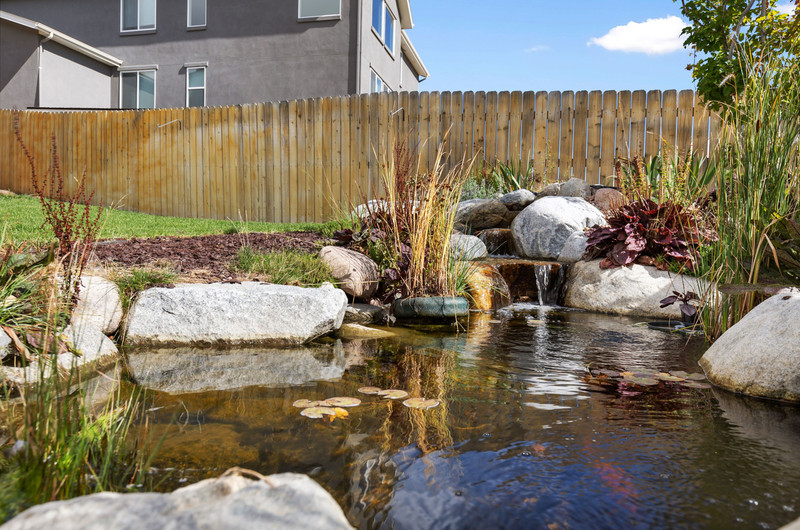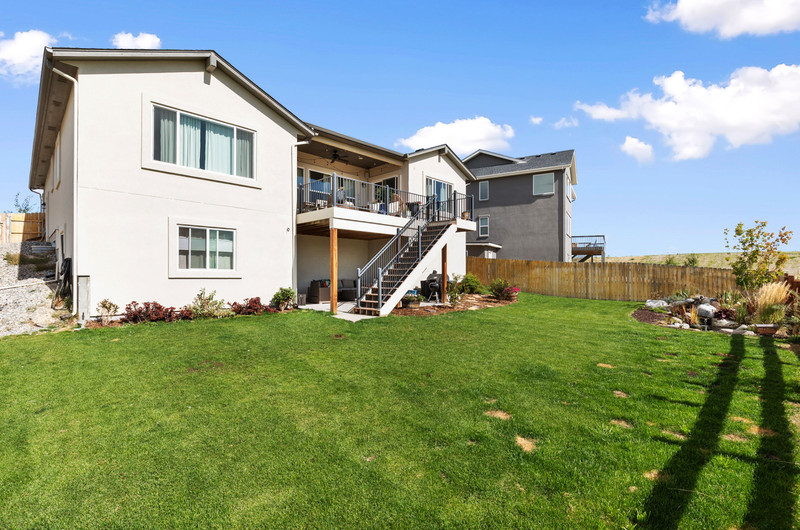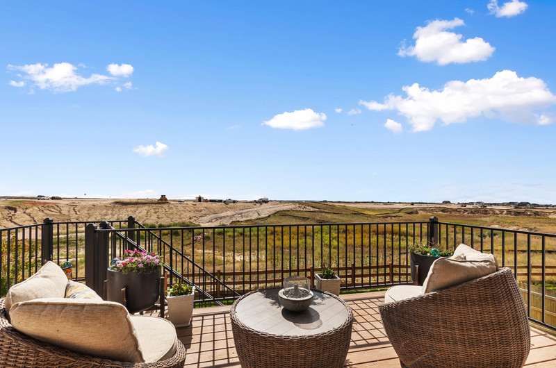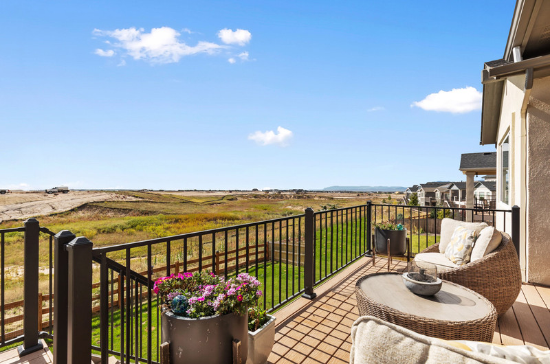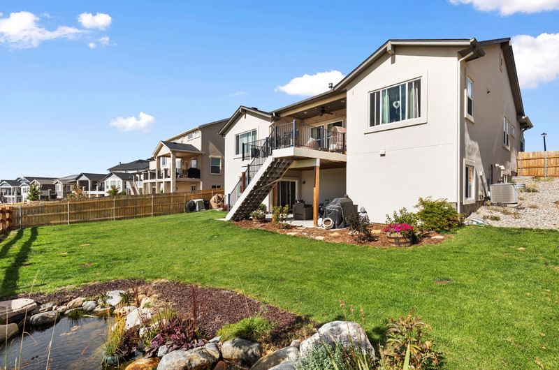 This gorgeous Sterling Ranch home is better than new. The landscaping includes a beautiful koi pond in the backyard, and there is a buffer zone behind the home which will maintain views. Huge kitchen opens into an equally large living room, and expansive outdoor views. Walkout from the kitchen to an upper deck overlooking the backyard. Large primary suite and laundry on the main level - all living can be done upstairs if desired! Large, comfortable downstairs living area with space for a bar, game and tv areas. 2 additional bedrooms and full bath are downstairs as well. Walk out to a private, covered patio where you have space to relax and entertain. Downstairs also has a large, unfinished storage area for all the extra stuff we carry around in our lives. Move right in and make yourself at home!
